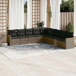 Salon de jardin 9 pcs avec coussins gris resine tressee