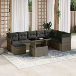 Salon de jardin 9 pcs avec coussins gris resine tressee
