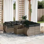 Salon de jardin 9 pcs avec coussins gris resine tressee