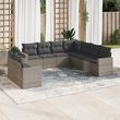 Salon de jardin 9 pcs avec coussins gris resine tressee