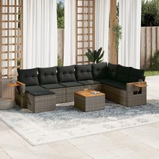 Salon de jardin 9 pcs avec coussins gris resine tressee