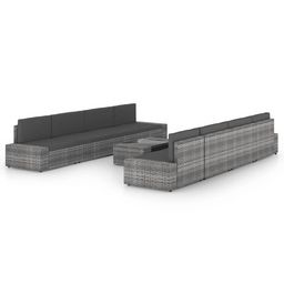 Salon de jardin 9 pcs avec coussins Gris Resine tressee