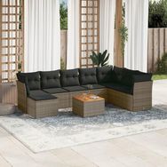 Salon de jardin 9 pcs avec coussins gris resine tressee