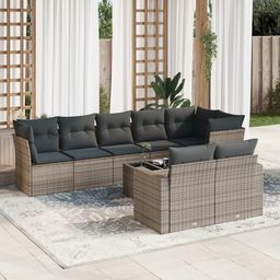 Salon de jardin 9 pcs avec coussins gris resine tressee