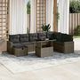 Salon de jardin 9 pcs avec coussins gris resine tressee