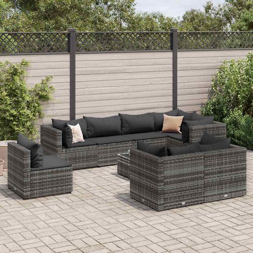 Salon de jardin 9 pcs avec coussins Gris Resine tressee