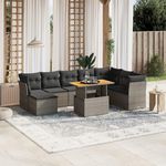Salon de jardin 9 pcs avec coussins gris resine tressee
