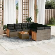 Salon de jardin 9 pcs avec coussins gris resine tressee