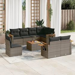 Salon de jardin 9 pcs avec coussins gris resine tressee