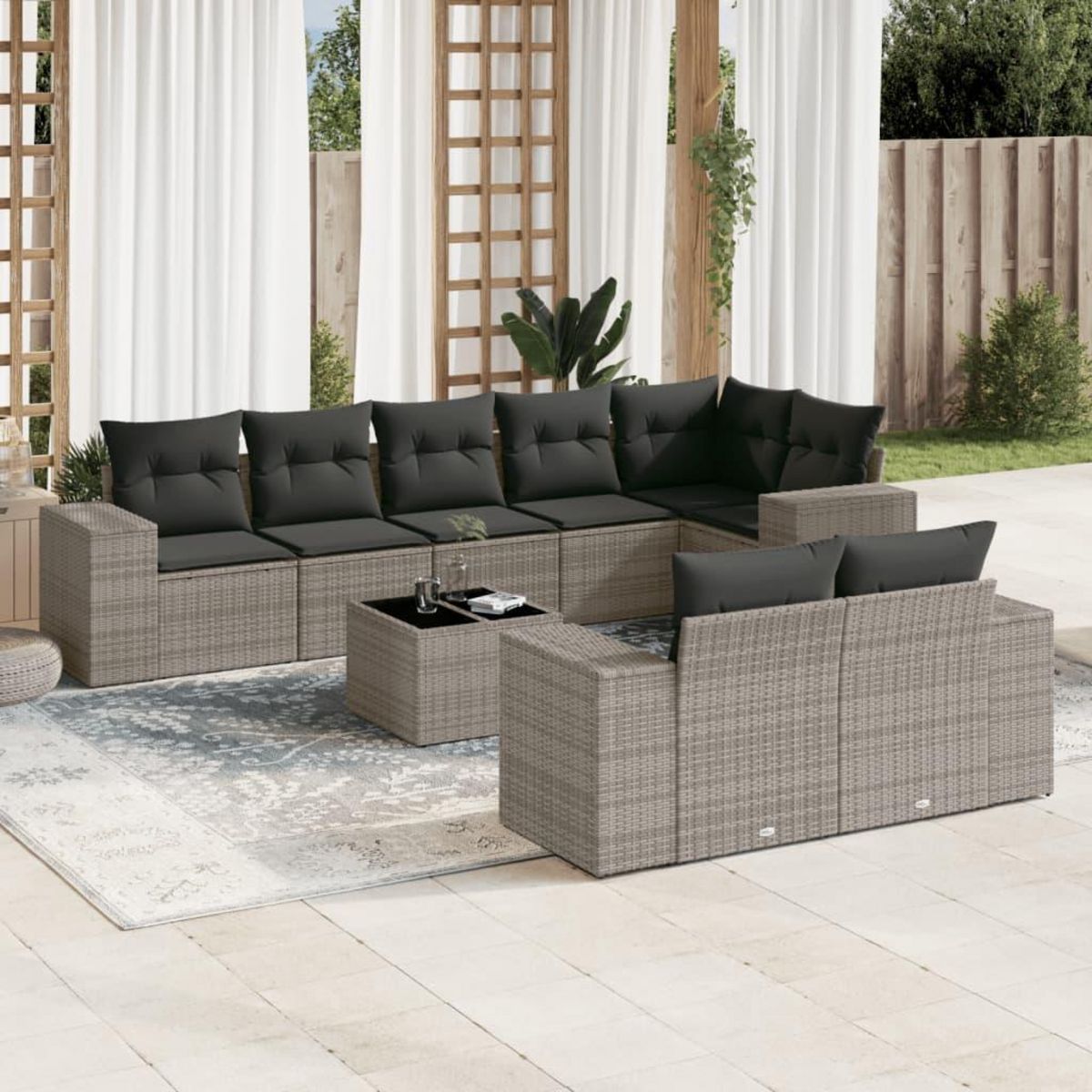 Salon de jardin 9 pcs avec coussins gris resine tressee