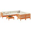 Salon de jardin 9 pcs avec coussins marron cire bois pin massif