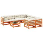 Salon de jardin 9 pcs avec coussins marron cire bois pin massif