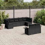Salon de jardin 9 pcs avec coussins noir resine tressee