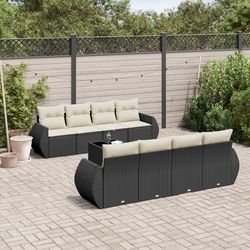 Salon de jardin 9 pcs avec coussins noir resine tressee