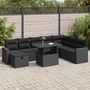 Salon de jardin 9 pcs avec coussins noir resine tressee