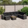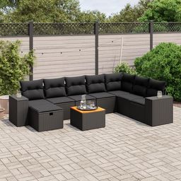 Salon de jardin 9 pcs avec coussins noir resine tressee