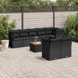 Salon de jardin 9 pcs avec coussins noir resine tressee