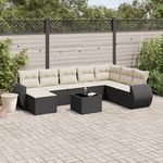 Salon de jardin 9 pcs avec coussins noir resine tressee
