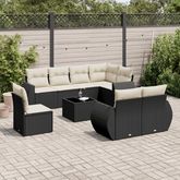 Salon de jardin 9 pcs avec coussins noir resine tressee