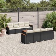 Salon de jardin 9 pcs avec coussins noir resine tressee