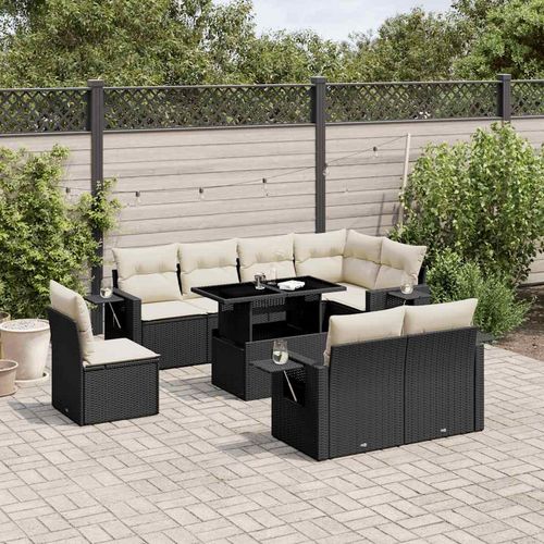 Salon de jardin 9 pcs avec coussins noir resine tressee