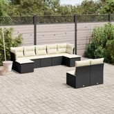 Salon de jardin 9 pcs avec coussins noir resine tressee