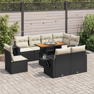 Salon de jardin 9 pcs avec coussins noir resine tressee