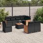 Salon de jardin 9 pcs avec coussins noir resine tressee