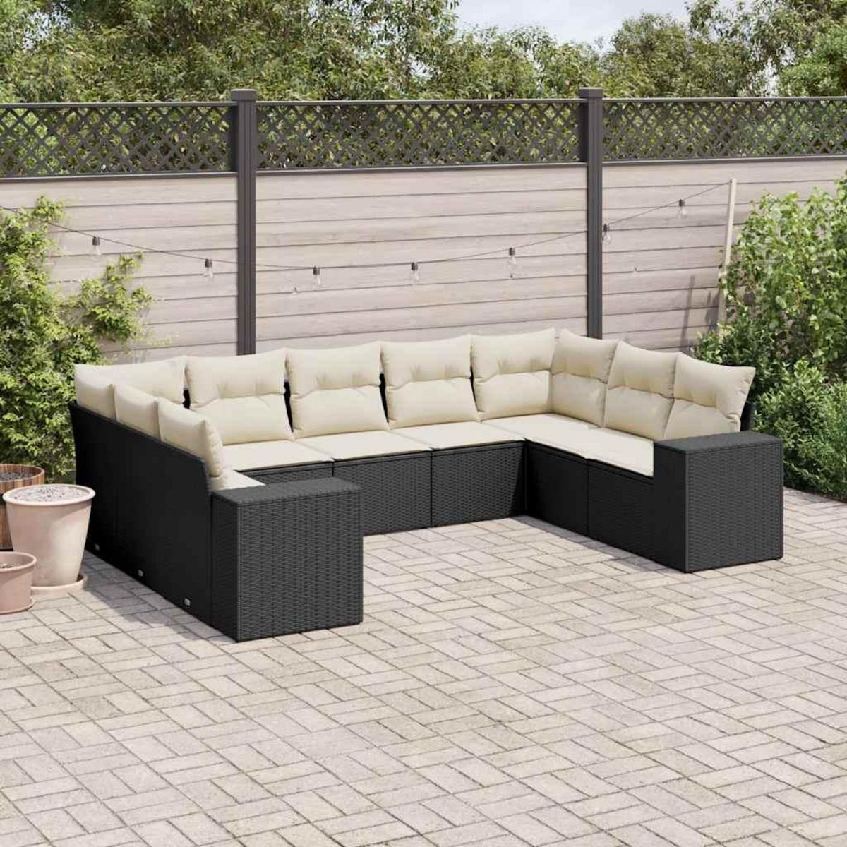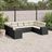 Salon de jardin 9 pcs avec coussins noir resine tressee