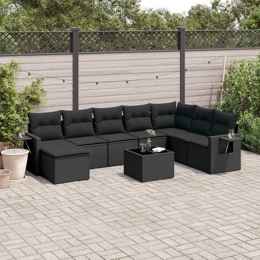 Salon de jardin 9 pcs avec coussins noir resine tressee