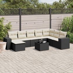 Salon de jardin 9 pcs avec coussins noir resine tressee