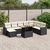 Salon de jardin 9 pcs avec coussins noir resine tressee