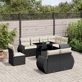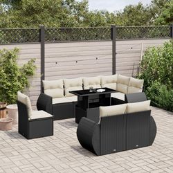 Salon de jardin 9 pcs avec coussins noir resine tressee