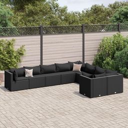 Salon de jardin 9 pcs avec coussins noir resine tressee