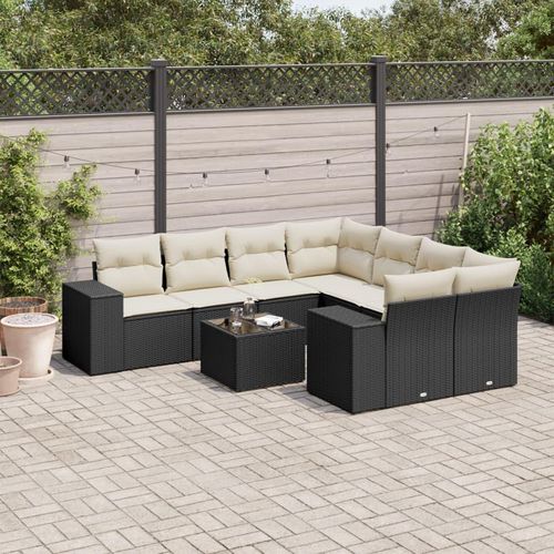 Salon de jardin 9 pcs avec coussins noir resine tressee