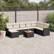 Salon de jardin 9 pcs avec coussins noir resine tressee