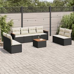 Salon de jardin 9 pcs avec coussins noir resine tressee