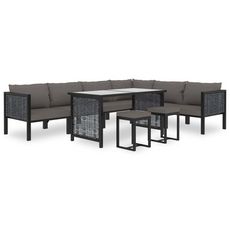 Salon de jardin 9 pcs avec coussins Resine tressee Anthracite