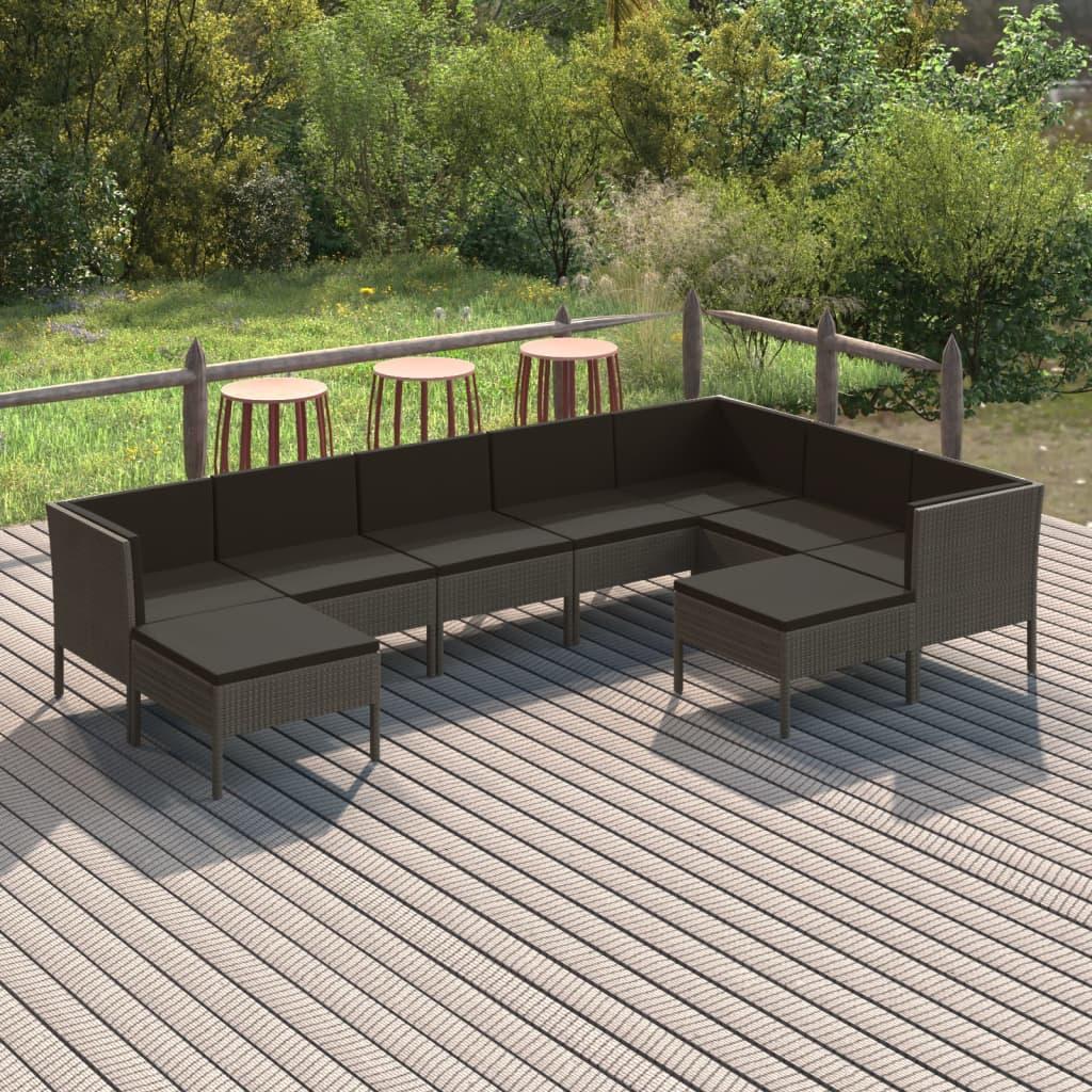 Salon de jardin 9 pcs avec coussins Resine tressee Gris