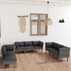Salon de jardin 9 pcs avec coussins Resine tressee Gris