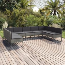 Salon de jardin 9 pcs avec coussins Resine tressee Gris