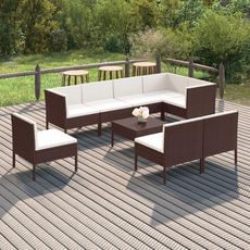 Salon de jardin 9 pcs avec coussins resine tressee marron