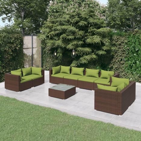 Salon de jardin 9 pcs avec coussins resine tressee marron