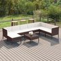Salon de jardin 9 pcs avec coussins resine tressee marron
