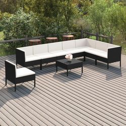 Salon de jardin 9 pcs avec coussins Resine tressee Noir