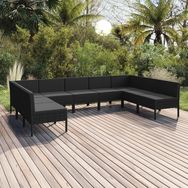 Salon de jardin 9 pcs avec coussins Resine tressee Noir