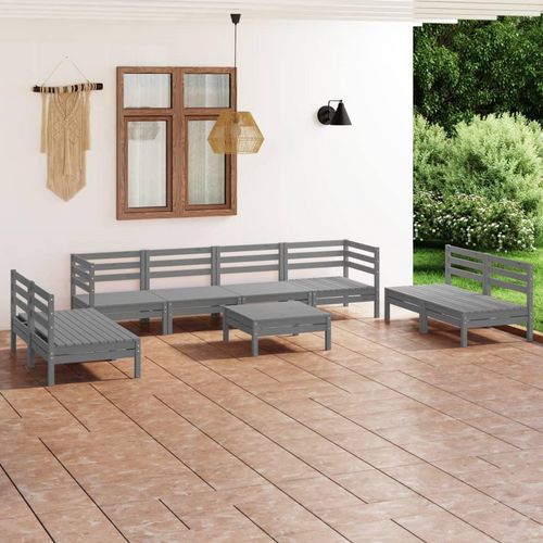 Salon de jardin 9 pcs Gris Bois de pin massif