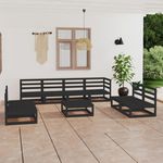 Salon de jardin 9 pcs noir bois de pin massif