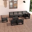 Salon de jardin 9 pcs noir bois de pin massif