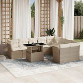 Salon de jardin avec coussins 10 pcs beige resine tressee